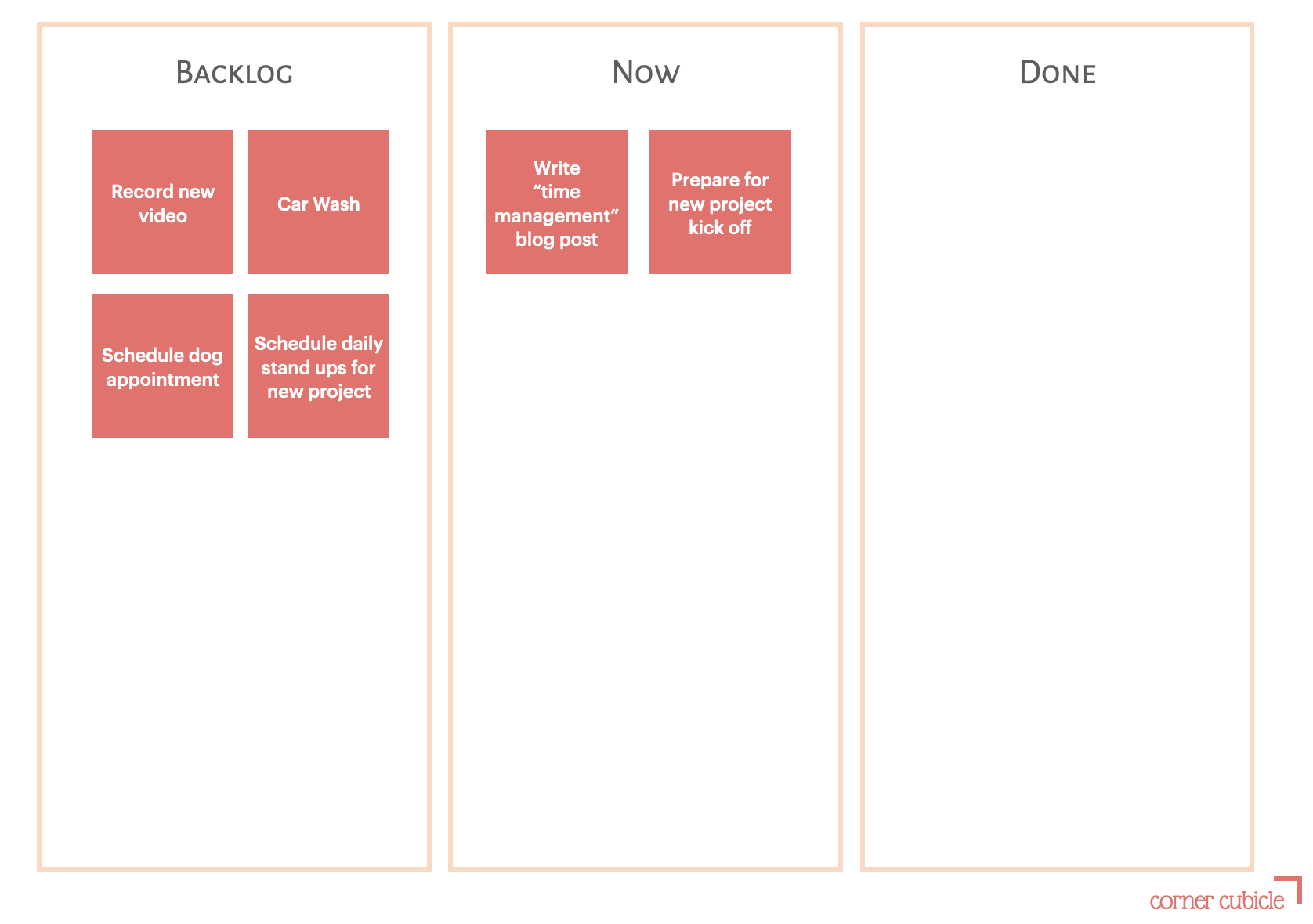 Let’s say you went with Kanban, you may notice that you’re inclined to add more tasks in the Now board towards the end of the week.