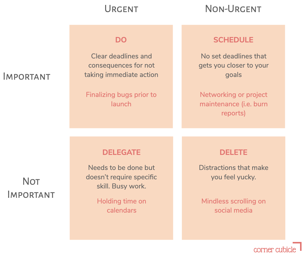 With the Eisenhower matrix, you may see that a lot of tasks are starting to make their way into the first quadrant towards the end of the week even if they don’t belong there.